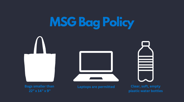 - Clear Bag Policy: MSG encourages the use of clear bags for quicker security screening, though non-clear bags within the size limit are still allowed.