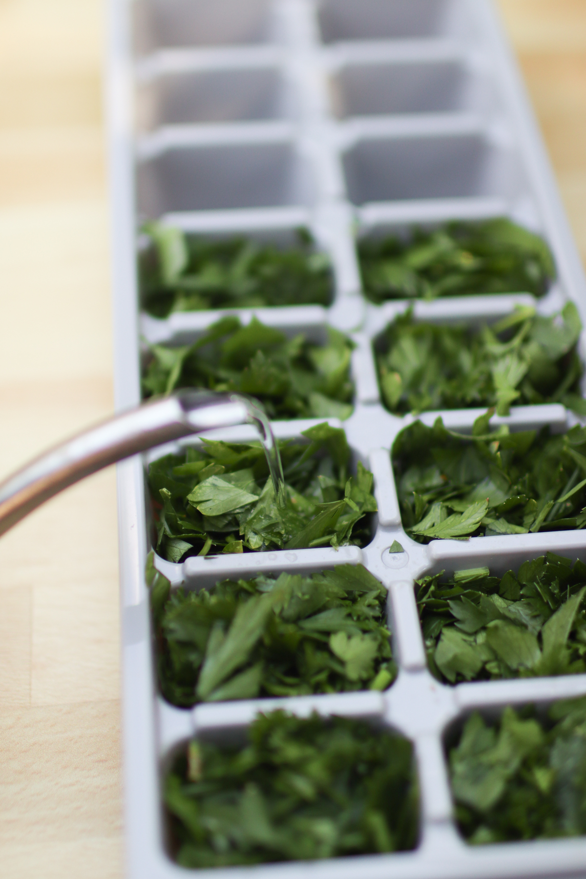 - Place chopped parsley into ice cube trays.