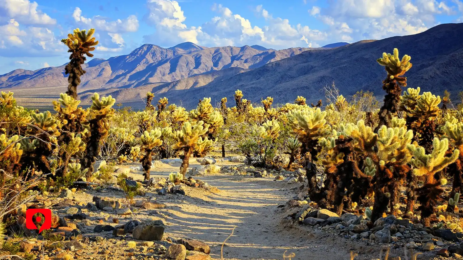 The Cholla Cactus Garden is situated in the northern part of Joshua Tree National Park, located in southern California. This area lies within the Mojave Desert, characterized by its hot summers, cold winters, and low annual rainfall. The garden spans approximately 10 acres and is easily accessible via a short loop trail off Pinto Basin Road.
