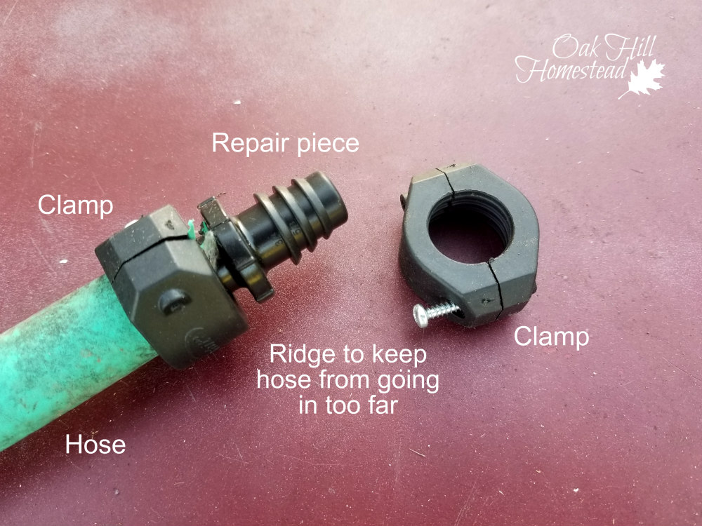 Materials needed: Hose repair kit (includes couplings and clamps), utility knife, screwdriver.