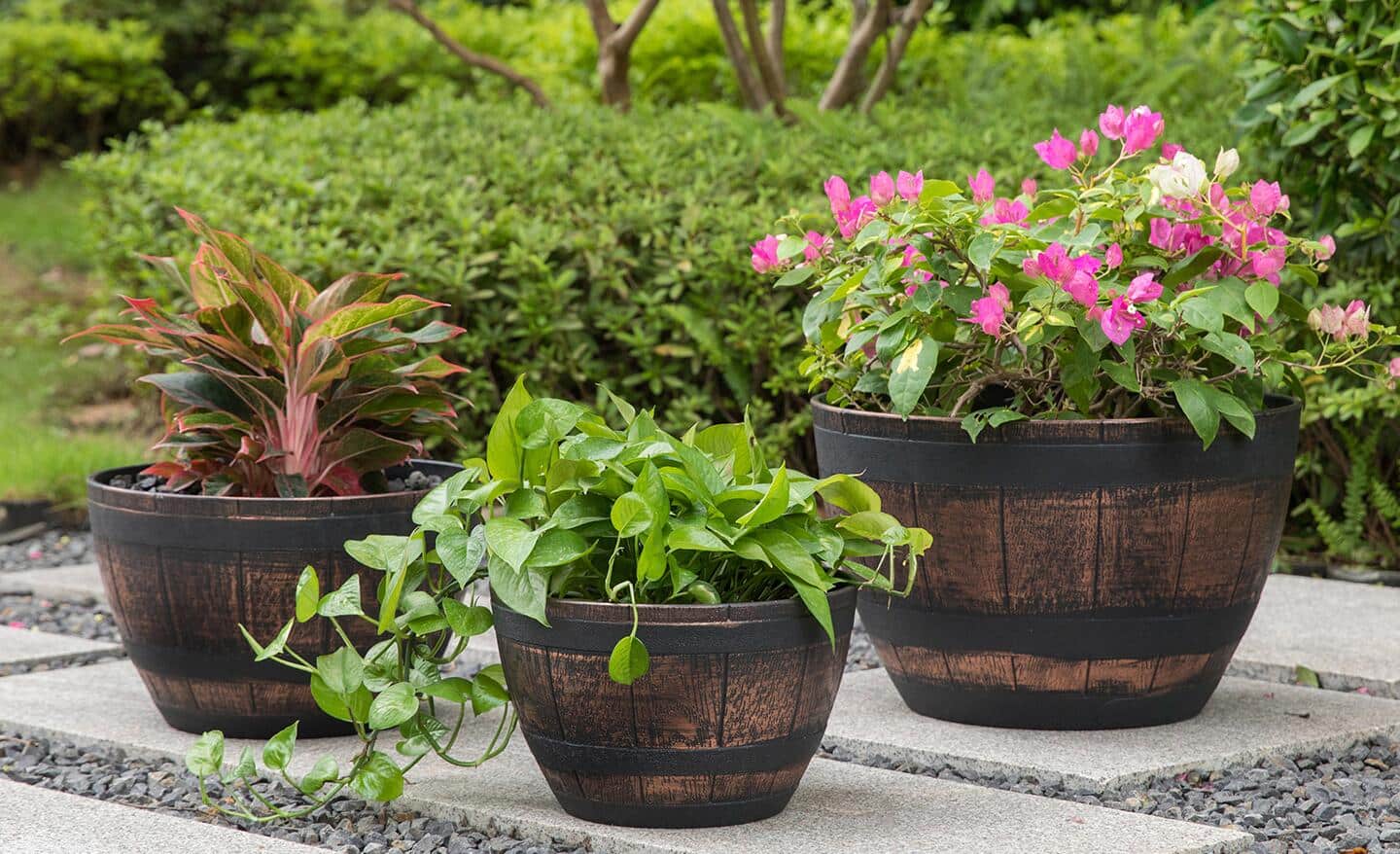 • Plastic or Resin Pots: Lightweight and easy to handle, ideal for moving plants frequently or for large containers.