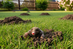 • Control Grubs and Insects: Use beneficial nematodes or targeted insecticides to reduce mole food sources.