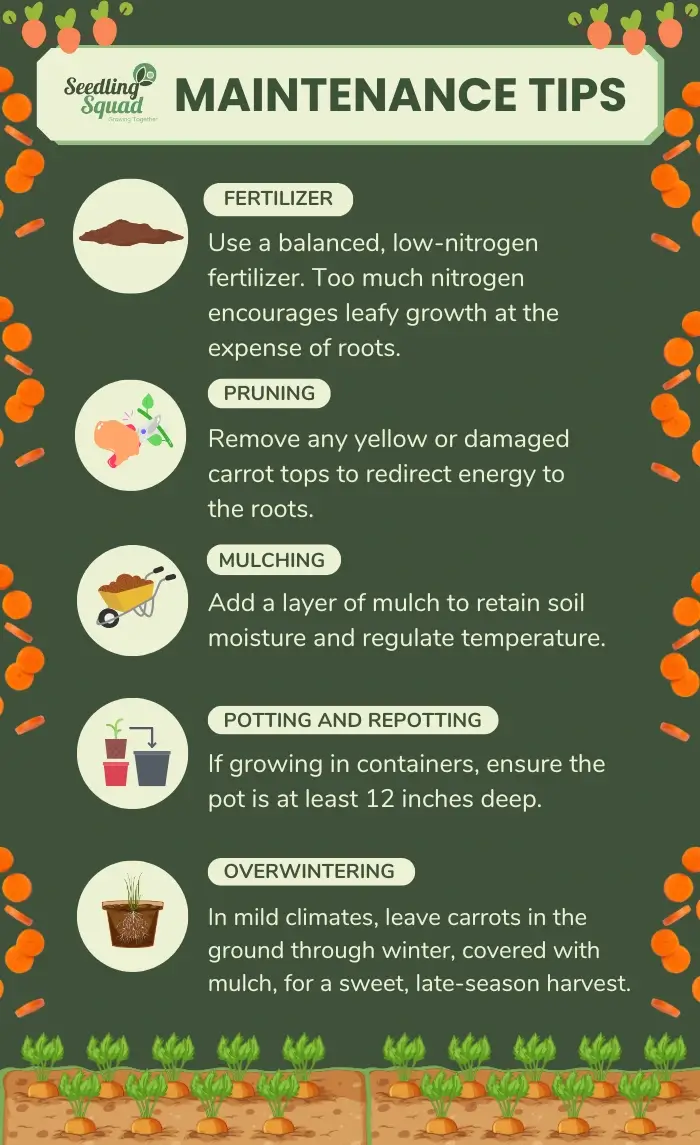 Carrots need consistent moisture to grow straight and tender roots. Follow these watering tips: