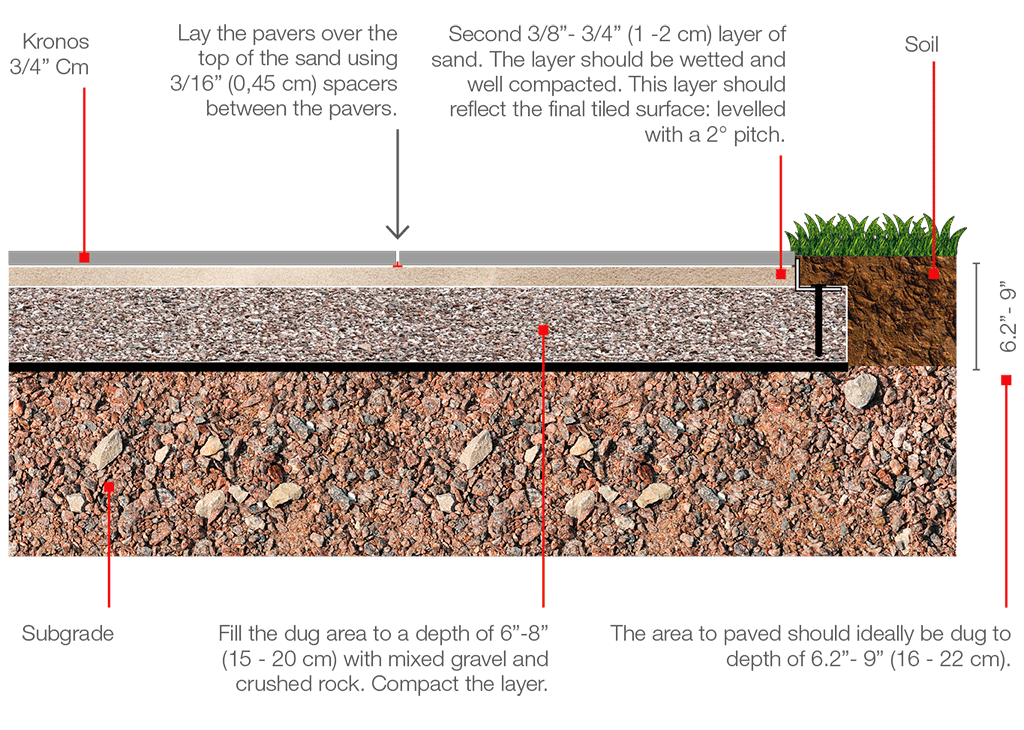 A base layer of 2-3 inches (5-8 cm) of sharp sand or fine gravel is ideal. For heavier tile types or high-traffic areas, increase base thickness.