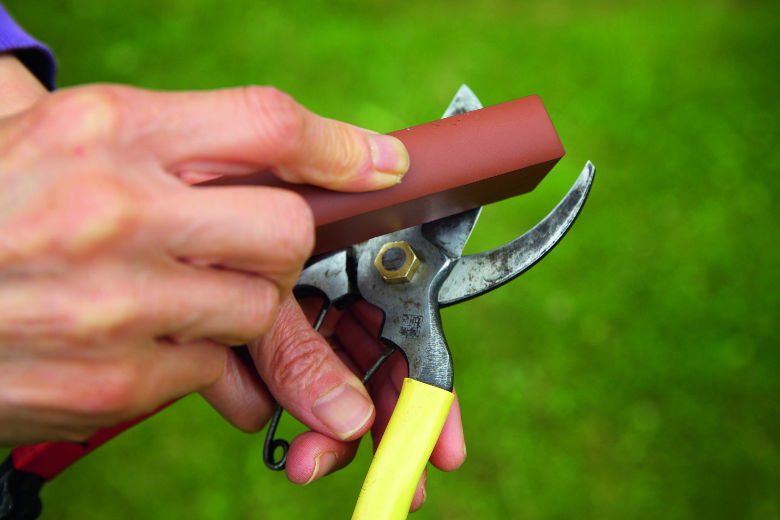 - Sharpening stone (whetstone or diamond stone): Ideal for most garden scissors.