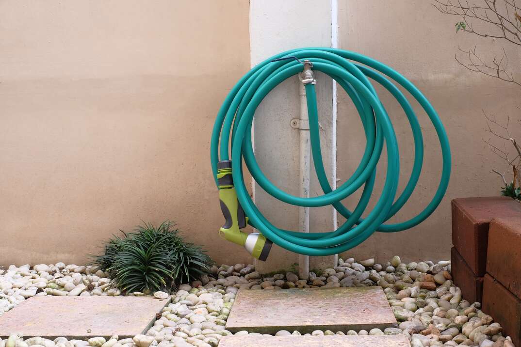 - Choose a durable rubber or hybrid garden hose sized for your garden.