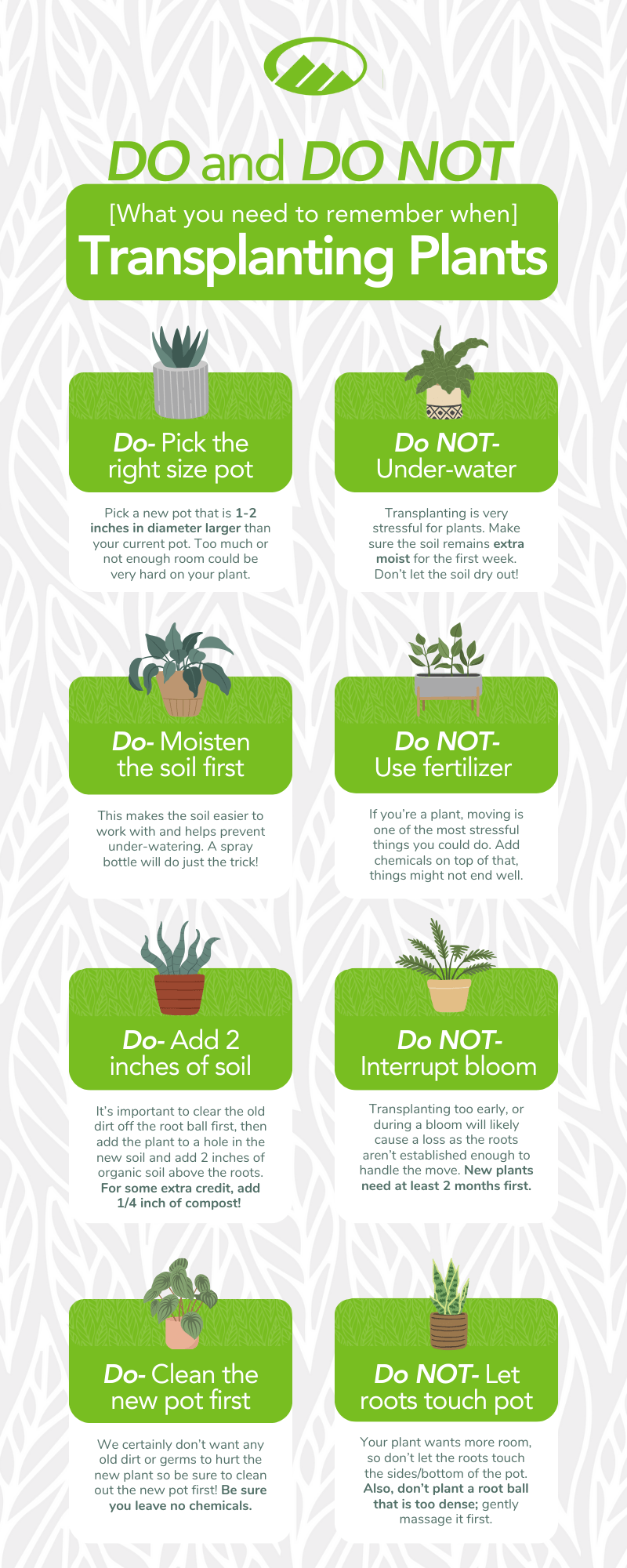 - Fine Gardening. Repotting Tips for Healthy Plants. Retrieved from https://finegardening.com