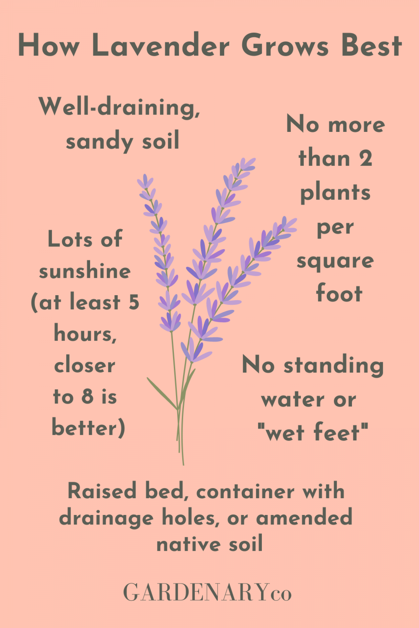 Lavender prefers slightly alkaline, nutrient-poor soils. To prepare your soil: